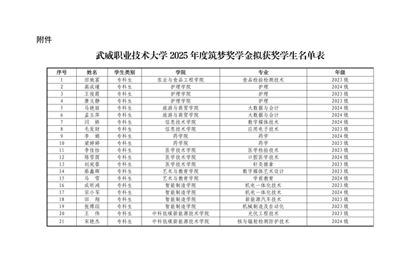 武威職業(yè)技術(shù)大學(xué)關(guān)于2025年度筑夢(mèng)獎(jiǎng)學(xué)金評(píng)選結(jié)果的公示