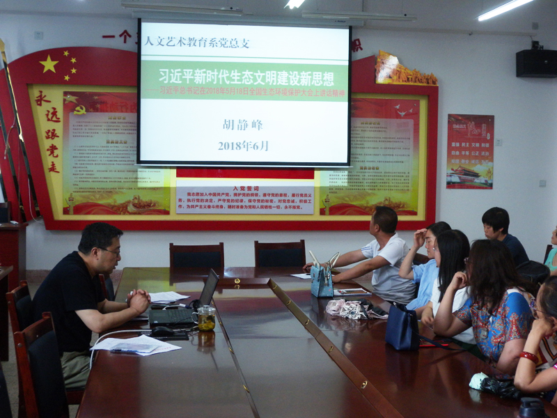 為深入學習習近平新時代中國特色社會主義思想,人文藝術(shù)教育系黨總支于6月13日下午在勵勤樓209黨員活動室開展書記講黨課活動。黨課由系黨總支書記胡靜峰主講,題目為《習近平新時代生態(tài)文明建設新思想》,系全體黨員參加了此次活動。