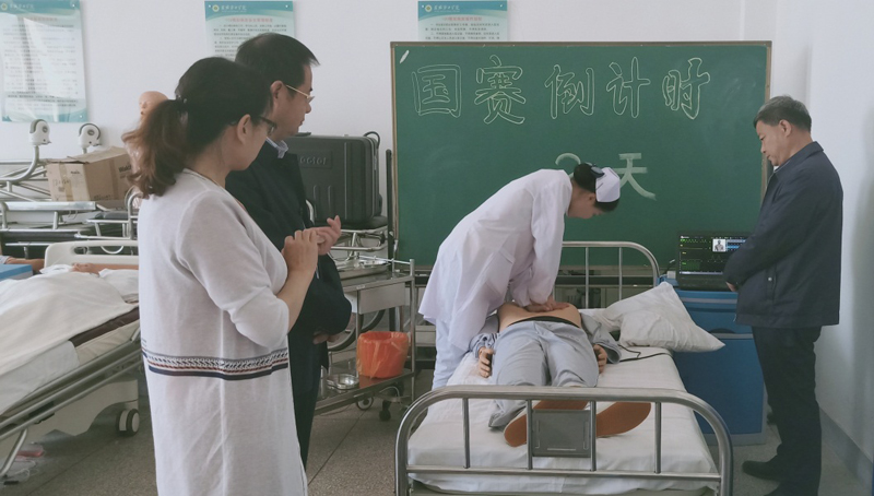 院領(lǐng)導高度重視此次比賽,全力支持大賽工作,時刻關(guān)注賽前訓練情況。學院黨委書記趙明、副院長翟存祥、教務處處長仲生仁多次到訓練現(xiàn)場觀看選手操作,并提出指導性的意見和建議。趙書記充分肯定了老師們的辛勤付出,要求輔導教師在訓練中一定要堅持高標準、嚴要求;鼓勵選手發(fā)揮潛能,賽出水平,實現(xiàn)新的突破。護理系成立了以黨總支書記張建輝、系主任韓曉萍牽頭,由專業(yè)教師組成大賽輔導小組,認真解讀競賽規(guī)程,周密安排訓練計劃,強化理論知識,細化操作項目,力爭在此次大賽中取得好成績。