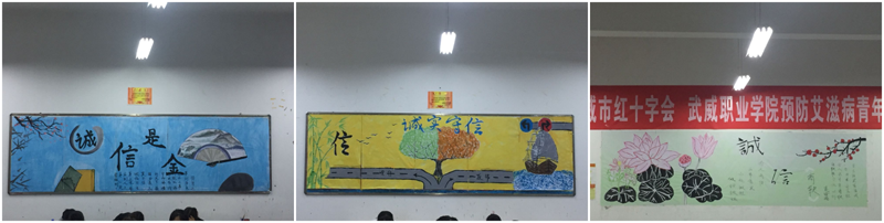 本次“誠實(shí)守信”主題教育活動(dòng)包含誠實(shí)守信主題班會(huì)、誠實(shí)守信主題黑板報(bào)比賽、“誠實(shí)守信我想說”微演講、誠實(shí)守信主題簽名活動(dòng)四項(xiàng)內(nèi)容。四項(xiàng)活動(dòng)緊密聯(lián)系,主題鮮明、宣傳了國家及學(xué)院資助政策,讓誠實(shí)守信意識(shí)深入到每一位學(xué)生心中,激勵(lì)同學(xué)們做一個(gè)具有正確三觀、德智體美勞全面發(fā)展的社會(huì)主義建設(shè)者和接班人。