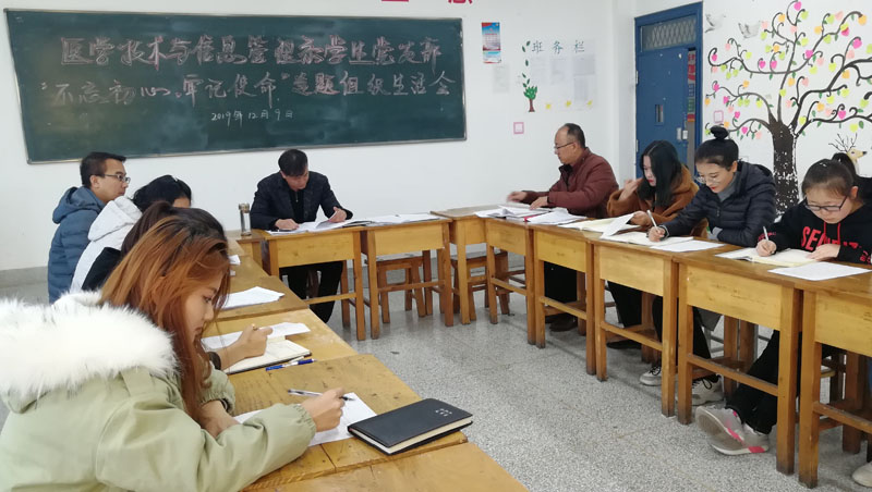 根據(jù)學院《關(guān)于基層黨組織召開“不忘初心、牢記使命”專題組織生活會和開展民主評議黨員的通知》要求,12月9日下午,醫(yī)學技術(shù)與信息管理系教學黨支部和學生黨支部在明遠樓416、414教室召開了“不忘初心、牢記使命”專題組織生活會,學院黨委委員、副院長張開禮、全體黨員以及入黨積極分參加會議。