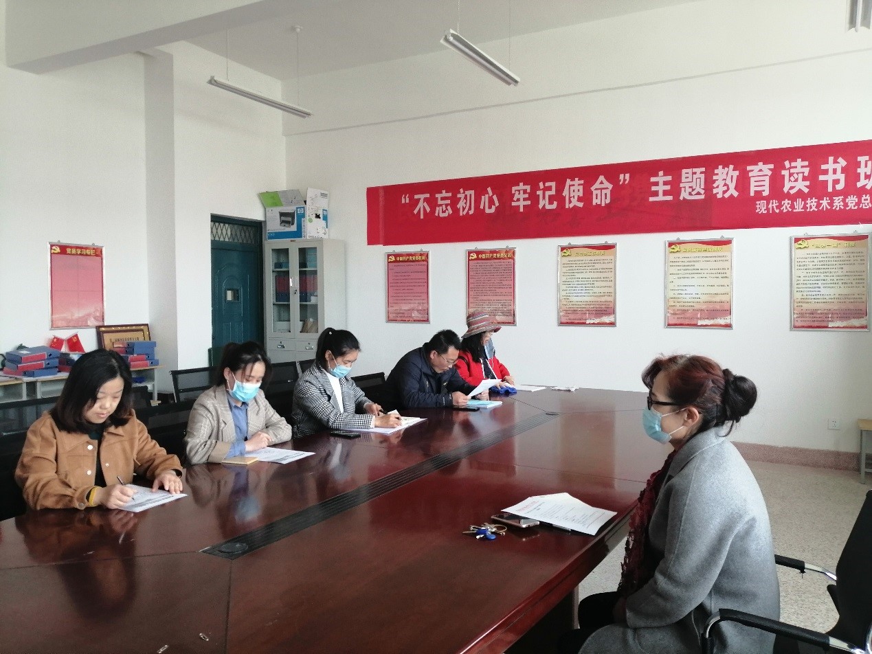4月22日下午,現(xiàn)代農(nóng)業(yè)技術(shù)系在行樹樓教學(xué)區(qū)309會(huì)議室召開班主任工作會(huì)議,全體班主任及輔導(dǎo)員參加了此次會(huì)議,會(huì)議由現(xiàn)代農(nóng)業(yè)技術(shù)系黨總支書記晏素珍同志主持。
