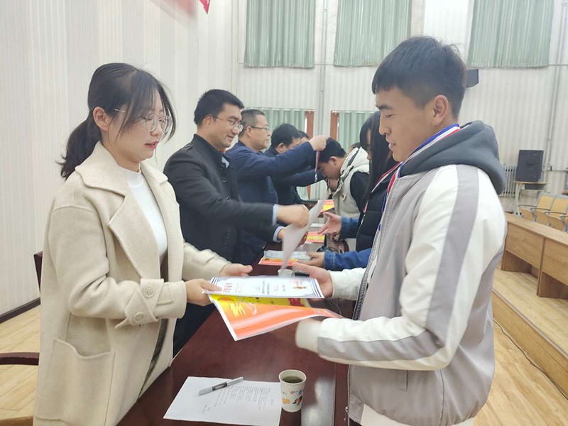 參會領(lǐng)導(dǎo)為獲獎學(xué)生頒獎。
