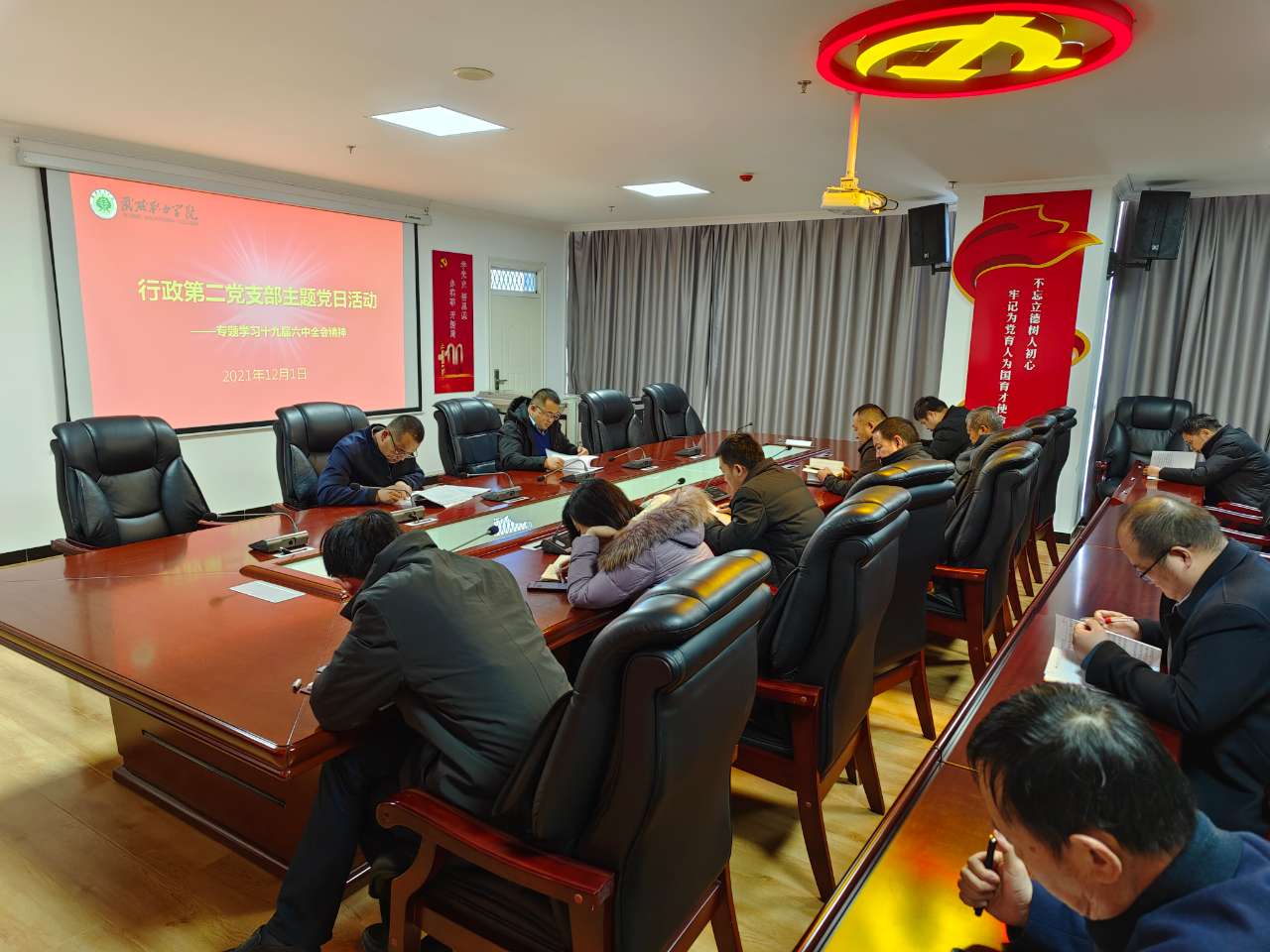 2021年12月1日上午,行政第二黨支部舉行主題黨日活動,專題學(xué)習(xí)貫徹黨的十九屆六中全會精神。