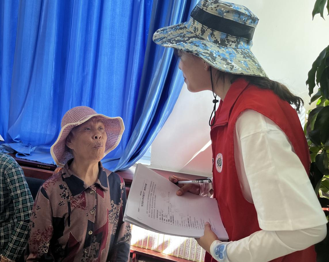 圖為實(shí)踐隊(duì)員對(duì)留守婦女普通話使用情況進(jìn)行調(diào)研