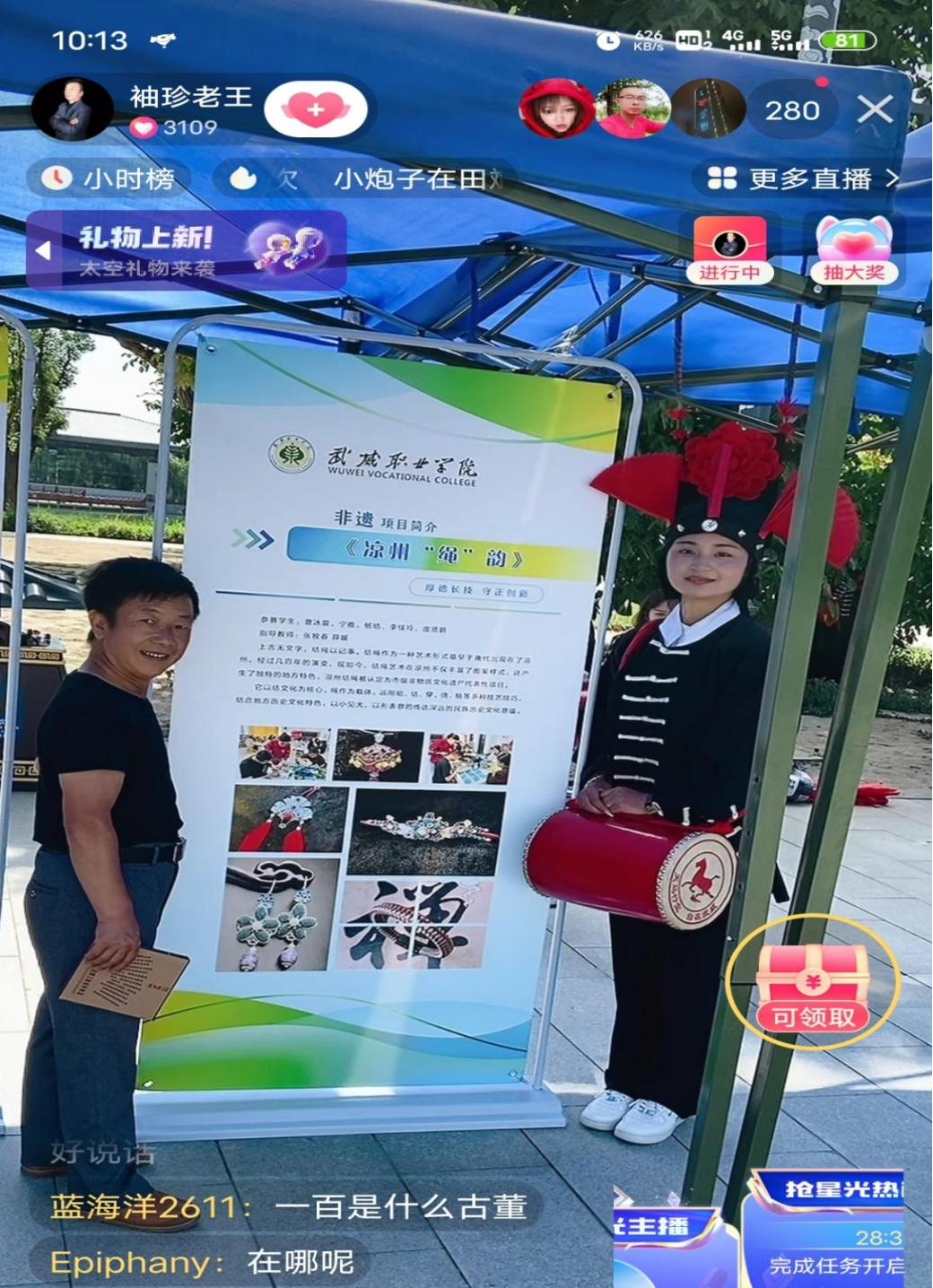為深入學習貫徹習近平新時代中國特色社會主義思想和黨的二十大精神,引導和幫助廣大青年學生上好與現(xiàn)實結合的“大思政課”,厚植愛農情懷,練就過硬本領。暑假期間,經(jīng)濟管理學院組建了“特色高效農業(yè)電商直播+非遺傳承”鄉(xiāng)村振興促進團,開展暑期“三下鄉(xiāng)”社會實踐活動,通過深入雷臺景區(qū)、古浪縣和民勤縣,宣傳國家級非物質文化遺產(chǎn),結合抖音直播與新媒體宣揚非遺文化-涼州攻鼓子,為非遺傳承注入青春力量。