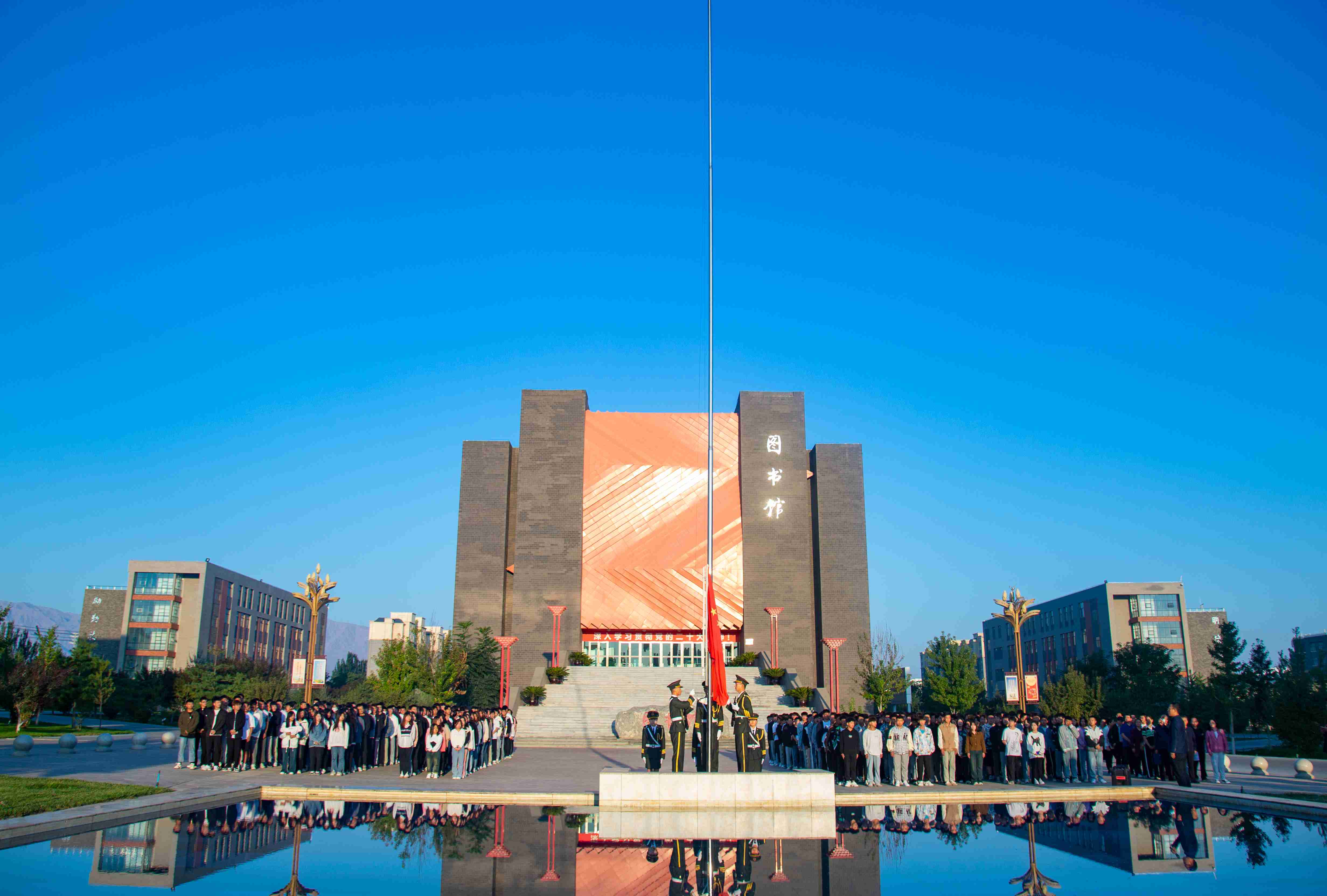8月28日早上7點,信息技術(shù)學(xué)院在圖書館廣場舉行升國旗儀式,黨總支書記潘從明、院長李亞梅和全體師生參加了此次升旗儀式。