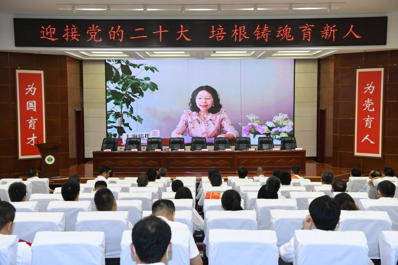 參會(huì)領(lǐng)導(dǎo)向獲得2022年“上善·低碳新能源獎(jiǎng)教金”的獲獎(jiǎng)人員頒發(fā)了證書?!吧仙啤さ吞夹履茉椽?jiǎng)教金”是上海國際信托有限公司為獎(jiǎng)勵(lì)學(xué)校教師在推動(dòng)綠色能源領(lǐng)域職業(yè)教育中作出的貢獻(xiàn),在學(xué)校設(shè)立的捐贈(zèng)資金。大會(huì)現(xiàn)場播放了上海國際信托有限公司張曉軍副總經(jīng)理講話視頻。
