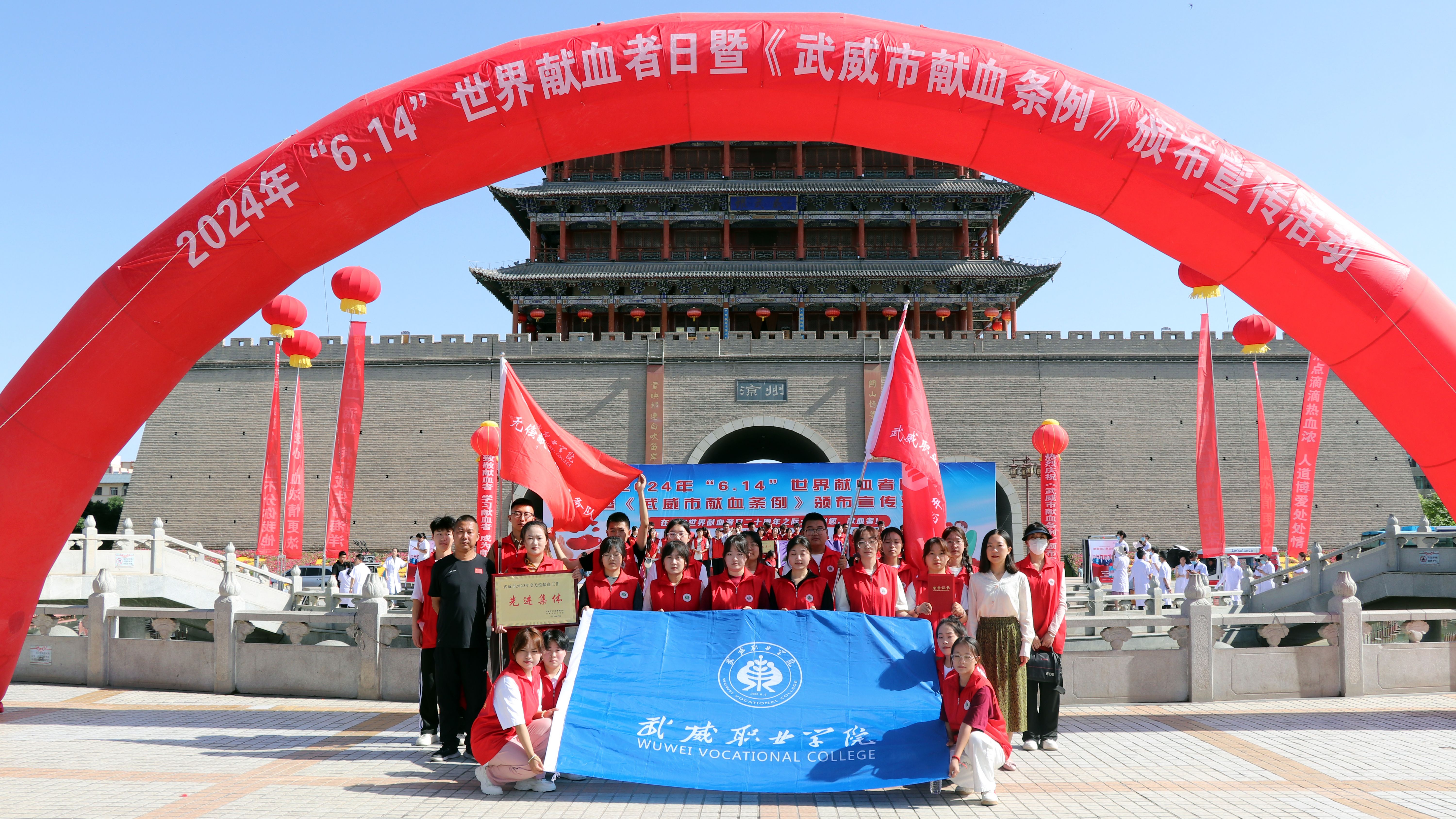 6月14日上午,我市2024年“6·14”世界獻血者日暨《武威市獻血條例》頒布宣傳活動在南城門廣場舉辦。市人大常委會副主任劉光美宣讀《條例》頒布公告,并為全市2023年度無償獻血工作先進集體、應急獻血先進集體和先進個人頒發(fā)獎牌和榮譽證書。學校被評為武威市2023年度無償獻血工作先進集體,1名教師被評為先進個人。