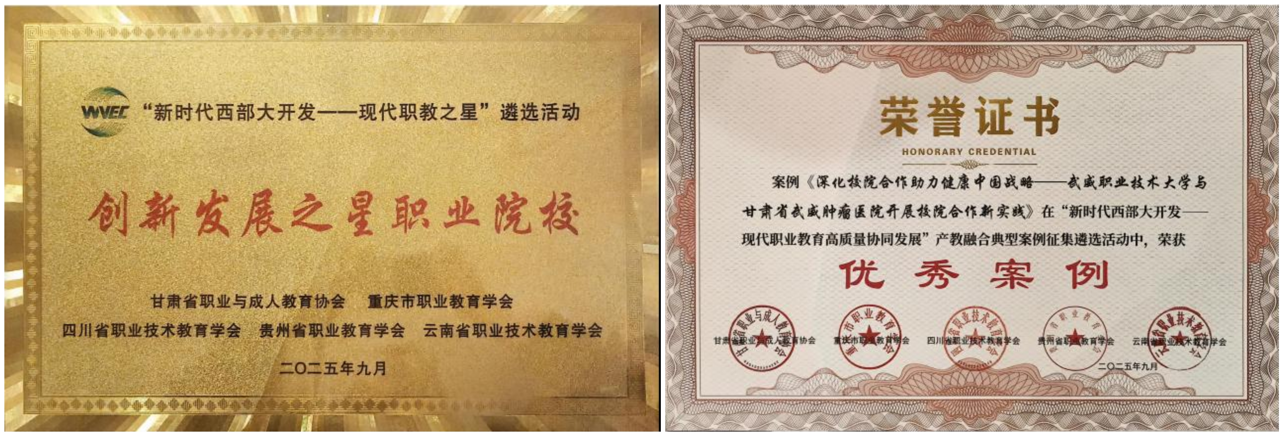 近日,從“新時代西部大開發(fā)——現(xiàn)代職業(yè)教育高質(zhì)量協(xié)同發(fā)展(蘭州)大會”上傳來喜訊,武威職業(yè)技術(shù)大學(xué)在甘肅省職業(yè)與成人教育協(xié)會組織的“新時代西部大開發(fā)——現(xiàn)代職教之星”和“新時代西部大開發(fā)——產(chǎn)教融合典型案例”征集遴選活動中榮獲兩項(xiàng)重要榮譽(yù)。學(xué)校獲評“創(chuàng)新發(fā)展之星職業(yè)院校”,《深化校院合作助力健康中國戰(zhàn)略——武威職業(yè)技術(shù)大學(xué)與甘肅省武威腫瘤醫(yī)院開展校院合作新實(shí)踐》榮獲“產(chǎn)教融合典型案例優(yōu)秀案例”。