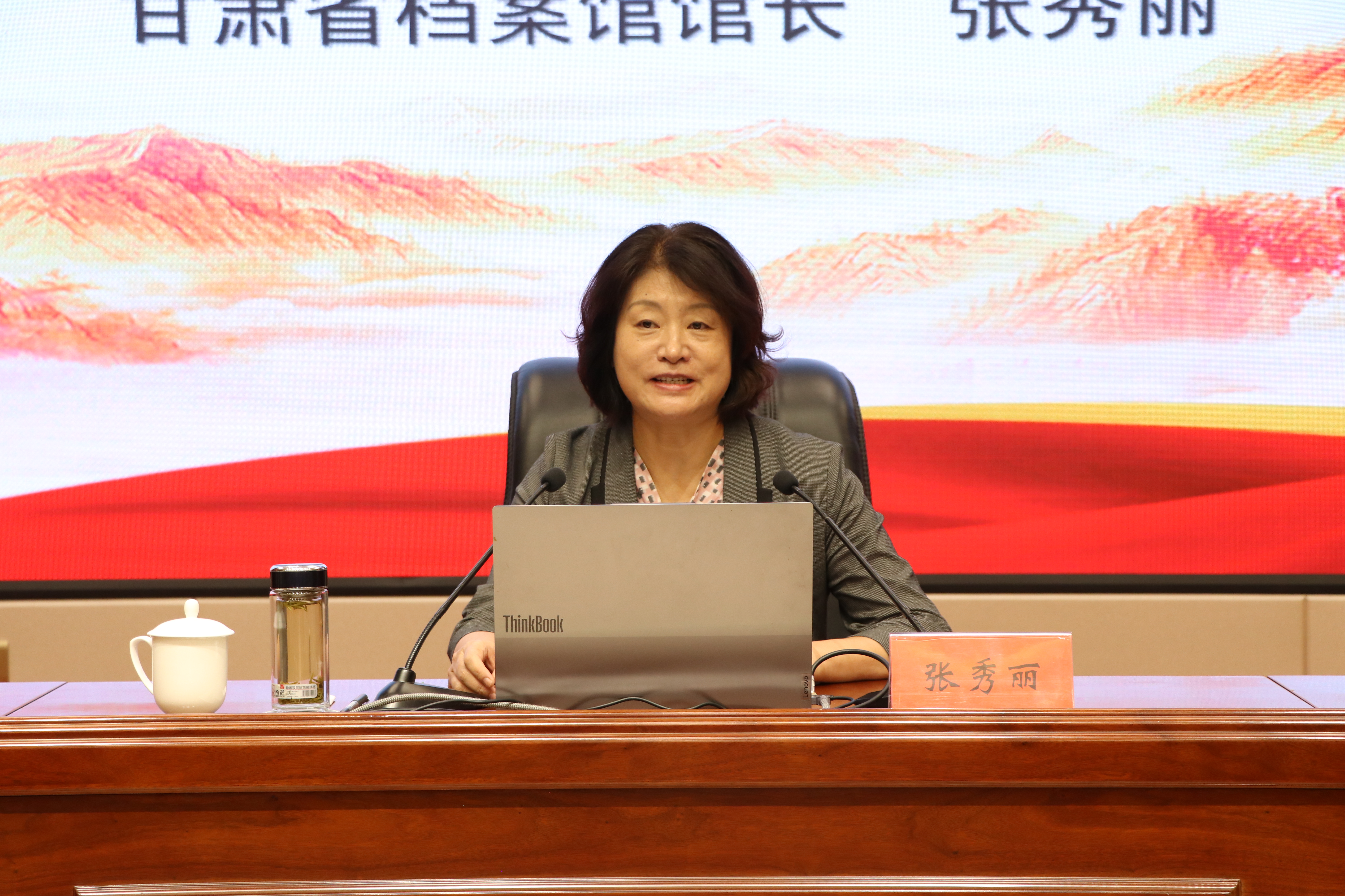 張秀麗結合自身從事檔案管理和文化研究的豐富經驗,從檔案“存史、資政、育人”根本任務出發(fā),通過大量珍貴檔案文獻和歷史案例,系統(tǒng)闡述了檔案在記錄民族苦難輝煌、服務當代治國理政、培育時代新人中的重要作用。報告中,她以館藏漢代簡牘、革命烈士叢德滋00001號烈屬證、民勤治沙檔案、甘肅地震檔案等一批具有歷史代表性和地域特色的檔案為載體,帶領師生穿越時空,感受中華民族生生不息的精神力量,深刻解讀“勿忘昨天的苦難輝煌,無愧今天的使命擔當,不負明天的偉大夢想”的時代內涵。