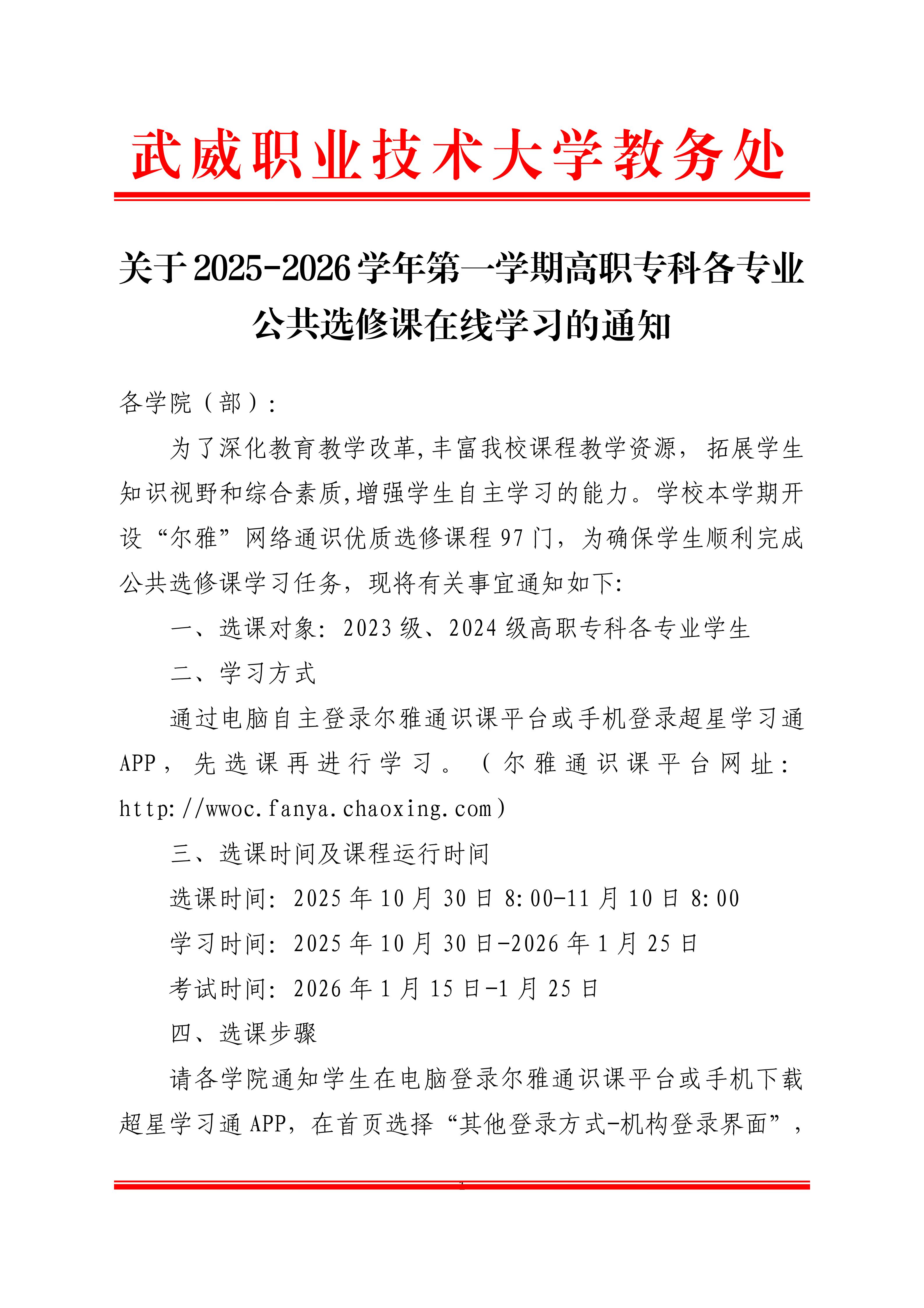 關(guān)于2025-2026學(xué)年第一學(xué)期高職專科各專業(yè)公共選修課在線學(xué)習(xí)的通知