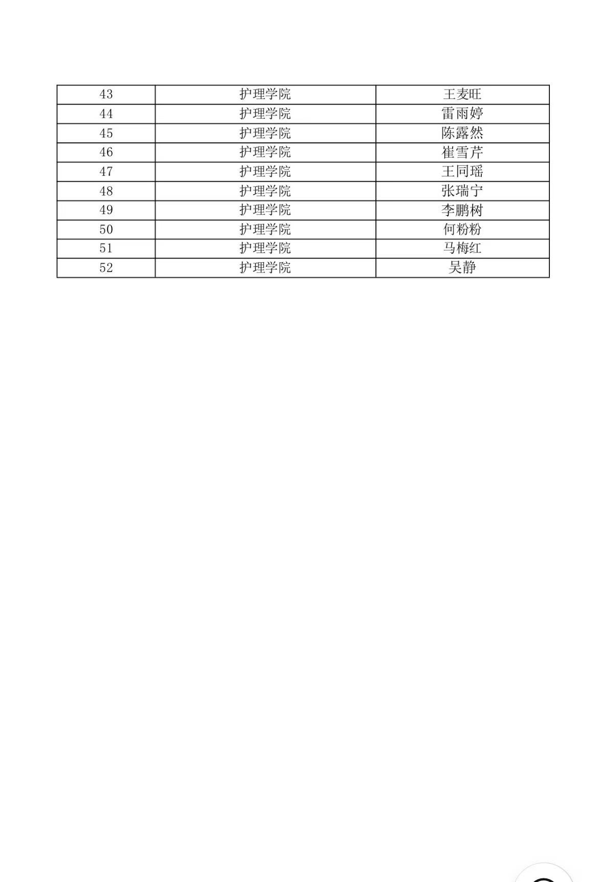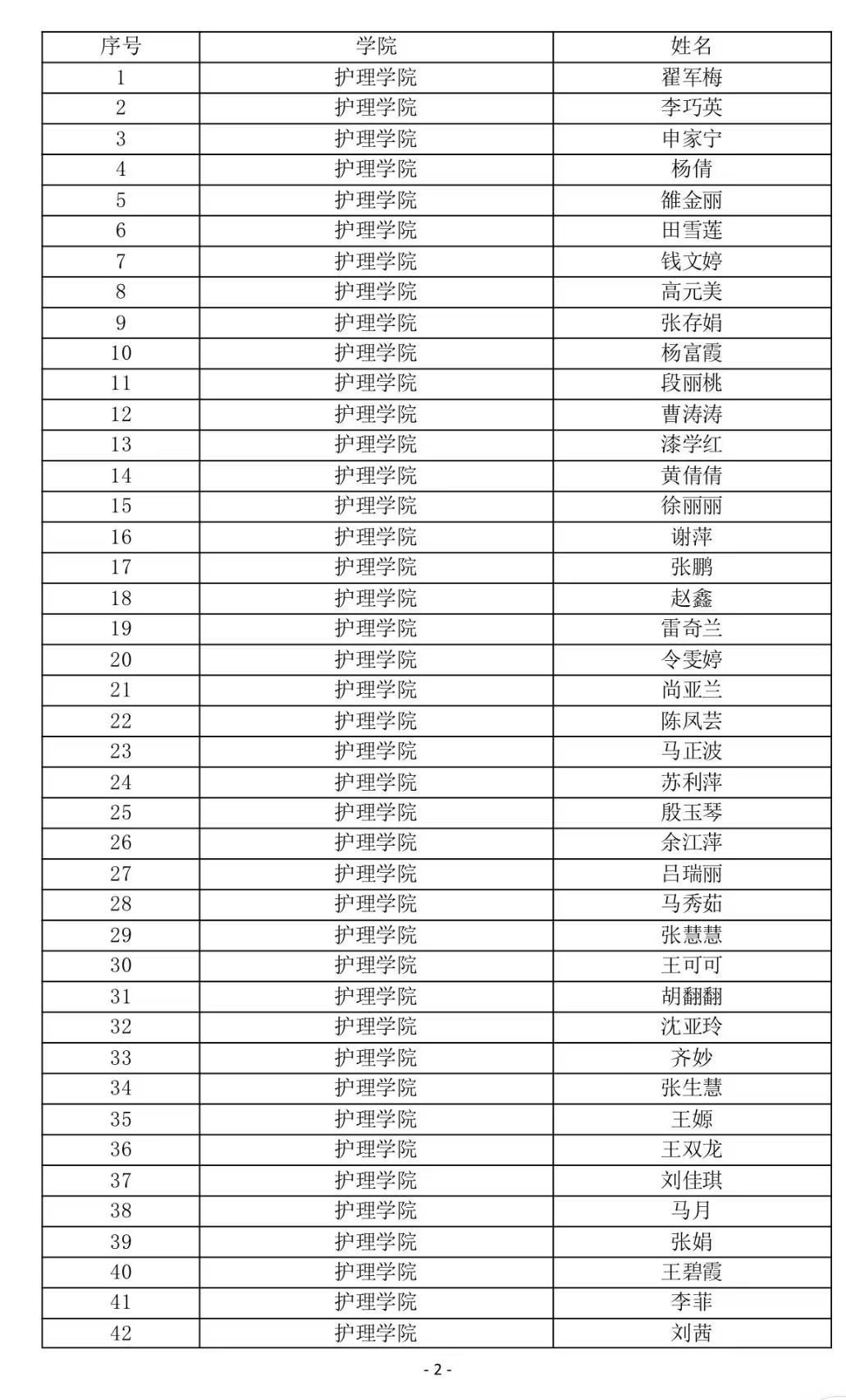 護理學院關于國家勵志獎學金推薦人選的公示