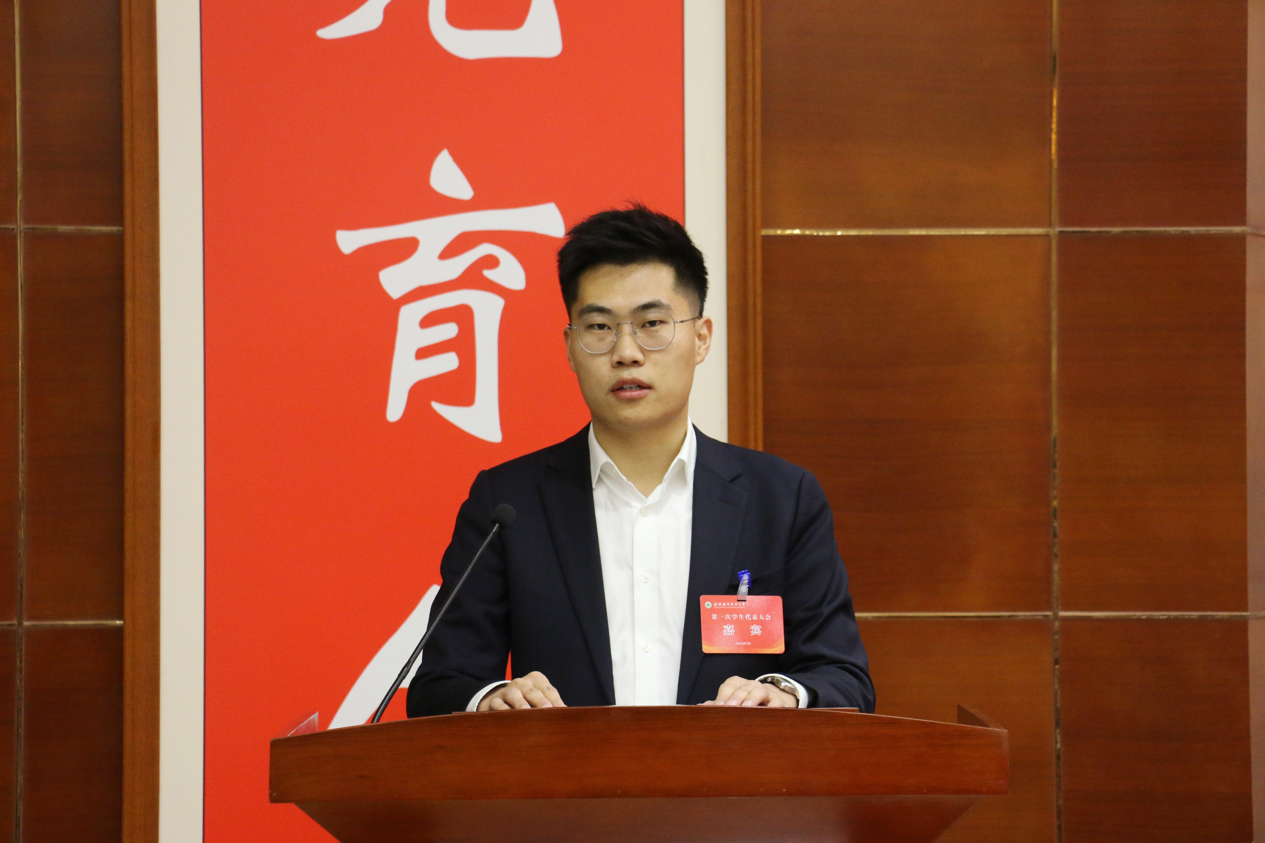 學(xué)校學(xué)生會主席團(tuán)成員李悅同學(xué)代表第十一屆學(xué)生會委員會向大會作題為《奮楫篤行啟新程 挺膺擔(dān)當(dāng)筑夢行,團(tuán)結(jié)帶領(lǐng)廣大同學(xué)在建設(shè)特色鮮明的高水平職業(yè)技術(shù)大學(xué)中貢獻(xiàn)青春力量》的工作報告。