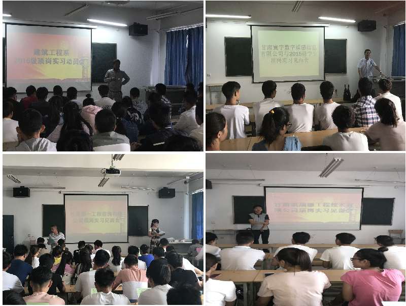 6月8日至16日,甘肅寰宇數(shù)字遙感信息有限公司、甘肅新一工程咨詢有限公司、國誠集團、蘭州凱瑞德工程有限公司、武威盛大集團等實習(xí)接收單位派專人來校,舉辦企業(yè)宣講會,詳細地介紹了用人單位的管理制度、日常生活、工作崗位、薪酬待遇等,并與系上洽談了學(xué)生頂崗實習(xí)合作辦法、責(zé)任義務(wù)、安全保障、就業(yè)等方面的合作細節(jié)。