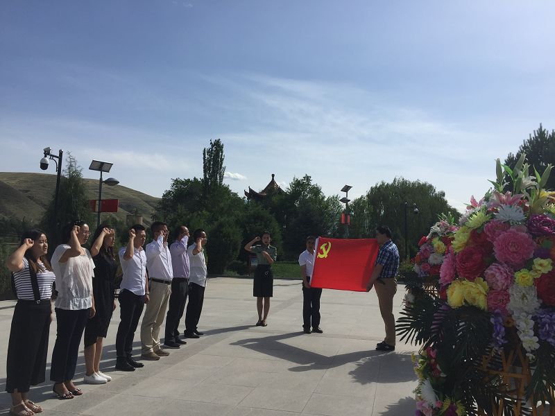 在紅軍西路軍烈士紀(jì)念碑前,面對(duì)鮮紅的黨旗,全體黨員高舉右手,莊嚴(yán)宣誓,重溫了入黨誓詞,接受黨性再教育。在參觀西路軍古浪戰(zhàn)役紀(jì)念館時(shí),大家跟隨講解員,認(rèn)真聆聽西路軍英勇無畏﹑艱苦斗爭(zhēng)的革命故事。