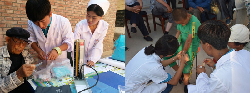 2017年暑假期間,護(hù)理系積極響應(yīng)院團(tuán)委暑期“三下鄉(xiāng)”社會(huì)實(shí)踐活動(dòng)的號(hào)召,組織11名學(xué)生成立了“愛(ài)心醫(yī)療服務(wù)團(tuán)”,赴武威市新井村、張義鎮(zhèn)、武威第十一中學(xué)、小洪溝河灣村、沙金臺(tái)村等多地開(kāi)展了為期6天的社會(huì)實(shí)踐活動(dòng)。