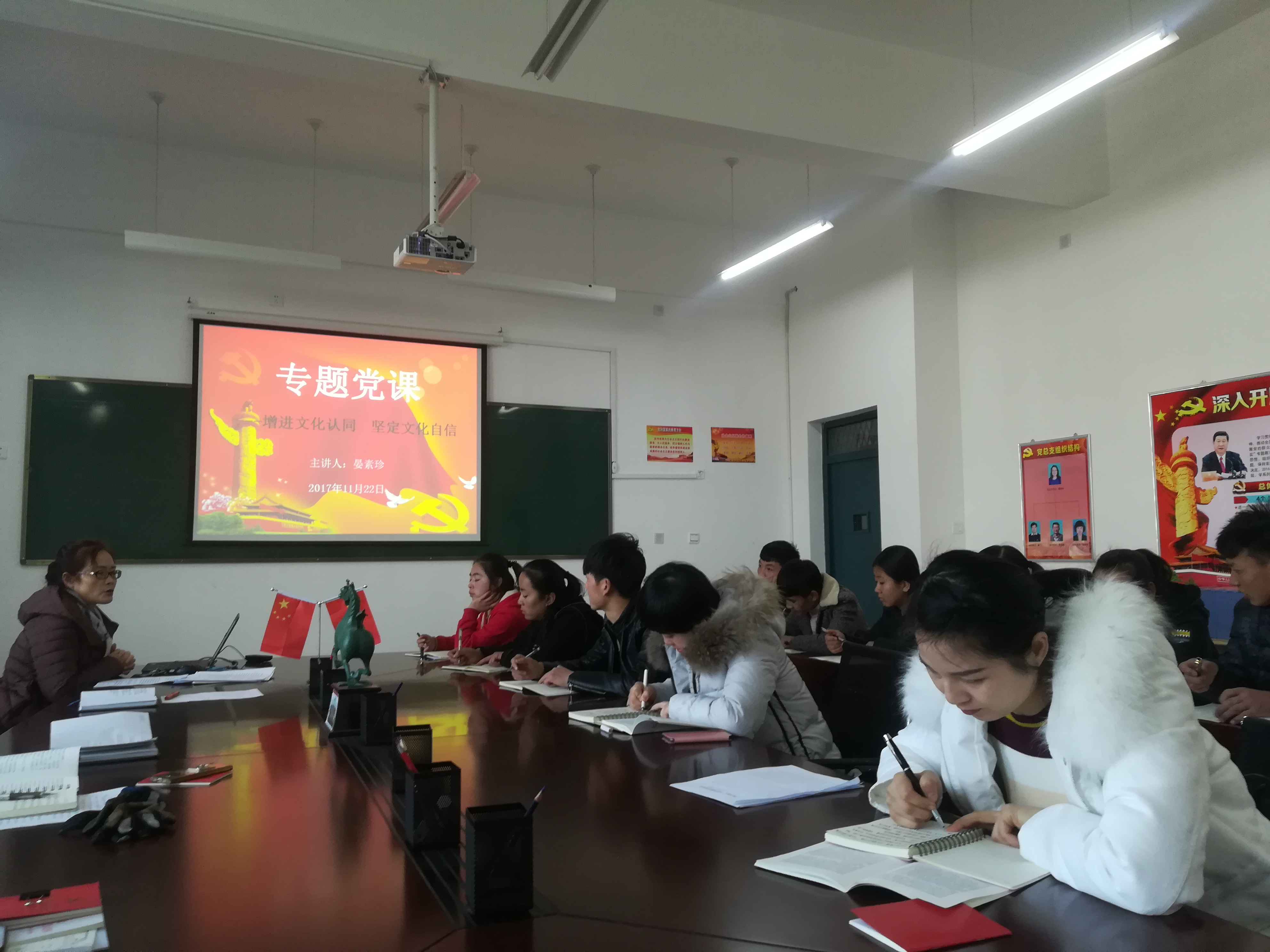 黨課以《增進(jìn)文化認(rèn)同 堅(jiān)定文化自信》為主題,主要從文化認(rèn)同是文化自信的基礎(chǔ)和源泉、文化認(rèn)同與文化自信具有價(jià)值追求一致性?xún)蓚€(gè)方面進(jìn)行了講解。